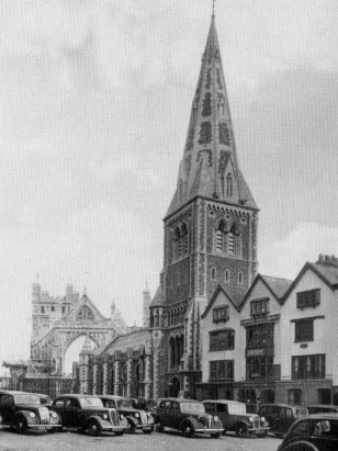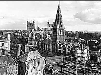 A church on the site of St Mary Major predates the Norman Cathedral that grew up in its vicinity. The former Minster was turned into the parish church of St Mary Major, however, that church was demolished in 1865 to make way for a new Victorian build. That church, described by Pevsner as "unexciting"is that illustrated in the archive images (with thanks to their authors) that are copied here from other sites. Attendances fell and the church ceased to be an active Anglican church, temporary occupation by the Methodists was short-lived and in 1971 the church too was demolished leaving nothing to merit photographing as a a substitute.