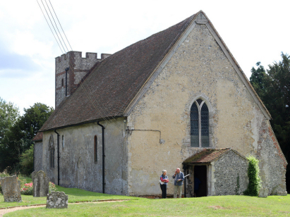 The ParishThe parish of Waltham lies in eastern Kent roughly 7 miles south of the city of Canterbury. Waltham is located a little over 2 miles west of the B2068 road which connects Canterbury through to Hythe on the south coast of the county. Waltham is a small village which sits at a triangular meeting of lanes high on the chalk downland of this area, a smaller collection gathers to the east around the church. Like most southern rural parishes farming dominated the local economy, the same situation is found today, slightly more arable than in the past. One feature of these chalk downs is the proportion of land, particularly slopes, set to forest, early gazetteers estimate almost one quarter of the parish acreage so managed and the proportion is still high today. The porous chalk allows no surface drainage in the vicinity of the village with water making its way largely underground northwards towards the Great Stour which heads through Canterbury and into the North Sea through the port of Sandwich. Waltham is sited at around 140 metres above the sea and whilst there is slightly higher ground to the northwest it is only by a few more metres. Waltham parish was fairly typically sized for this area, parishes here are either large by southern standards or quite small, Waltham covered just over 3,200 acres and would have supported a population of around 550 parishioners. Waltham is not specifically mentioned in Domesday Book. |