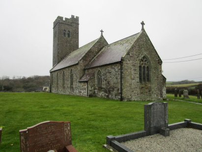 The ParishThe parish of Walwyn's Castle lies in southwestern Pembrokeshire roughly 6 miles southwest of the market town of Haverfordwest. Walwyn's Castle sits a quarter of a mile south of the B4327 road which links Haverfordwest through to Dale. The village is small and has most properties lining the main lane running south from the B4327. Quite who was Walwyn is debatable but his castle was originally one of a series of possibly Iron Age forts which defended the land upstream from Sandyhaven Pill. Welsh legend has it as Gwalchmai's castle, a strikingly large warrior and contemporary with King Arthur. Much of the area is set to pasture, being close to the west coast inbound salty winds do not encourage arable crops. A small stream runs the 3 or so miles to Sandyhaven Pill, one of the myriad of such inlets set around the ria of Milford Haven which is joined en route to the outer Bristol Channel. Walwyn's Castle is sited at around 30 metres above the sea with church & castle standing aloof at 55 metres, to its east rises higher ground culminating in Boltonhill which tops out at 110 metres. Walwyn's Castle parish was fairly extensive covering close to 4,000 acres and would have supported a population of about 350 parishioners. Like most of Wales Walwyn's Castle is not mentioned in Domesday Book which did not cover this area. |
