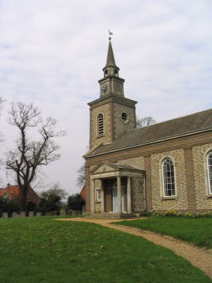 to Fakenham road, now bypassed by the main road it is a quiet village
