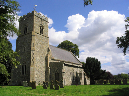St Mary's church lies at the heart of the village and just east of the B1077 main road. The church is largely in the Decorated style which is indicative of an origin in the early 14th century. The tower and south aisle are later than the main body of the church. The church sits in a very attractive graveyard with many mature trees giving a tranquil setting.